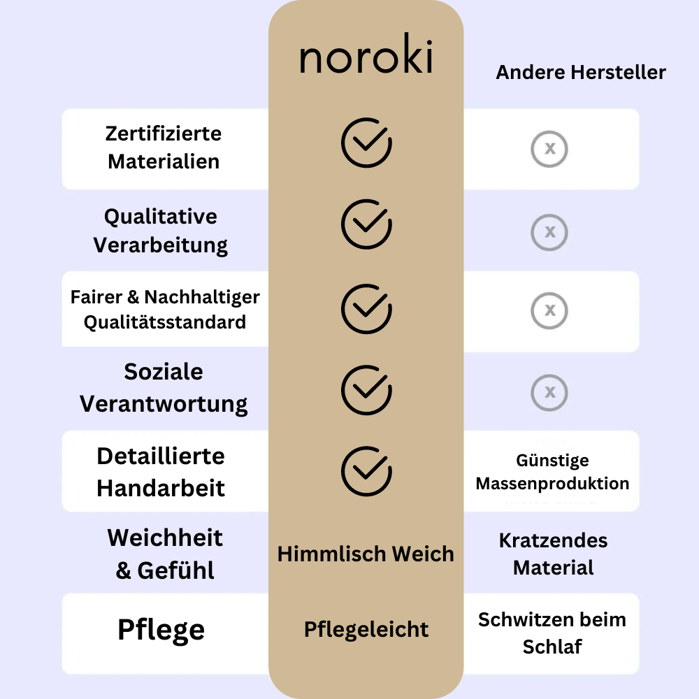 - Für Allergiker geeignet, da Material ein geringes Wachstum für Bakterien & Milben bietet.